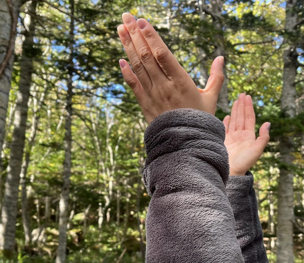クマ鈴や手を数回大きめに叩くなど、自然界にはない音を出しながら歩いて、ヒグマに人間の存在を知らせてあげましょう。